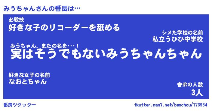 | ヒーロー風カッコイイあだ名 | 『スーパーミウチャン』『炎刃騎士ミウ』 |