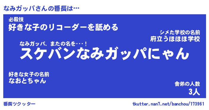 | ファンタジー風あだ名 | 『ナミフェル』『エターナルナミガッパー』 |