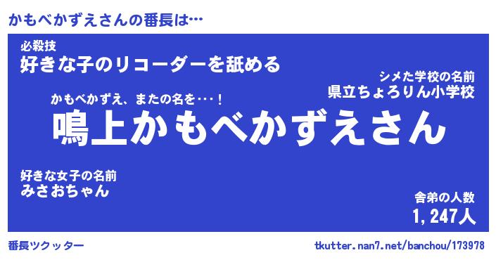 | 意味不明あだ名 | 『ペロリンかもべかずえ』 |