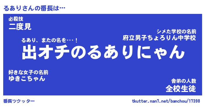 | 肩書あだ名 | 『るあり社長』『るあり国家主席』 |