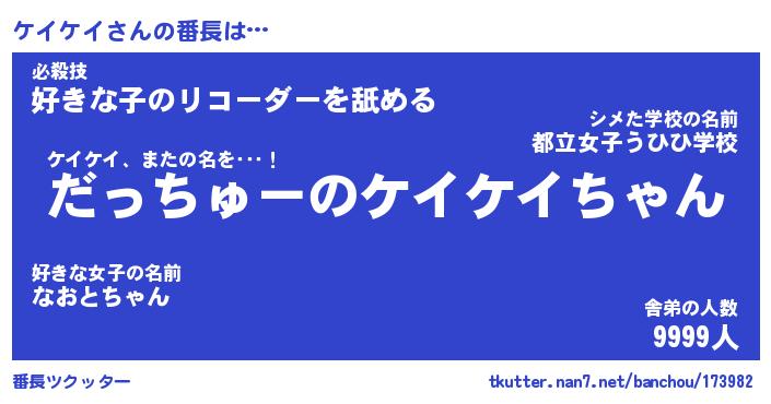 | 伝説のあだ名 | 『伝説のスナイパーケイケイ』 |