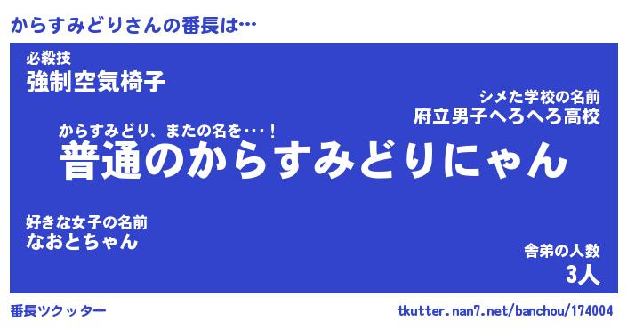 | ヒーロー風カッコイイあだ名 | 『スーパーカラスミドリ』『魔戒騎士カラ』 |