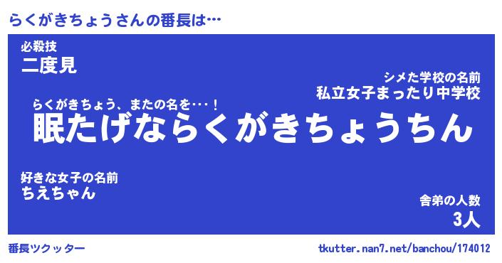 | 2回繰り返すあだ名 | 『らくらく』『ららくく』『ねちねち』 |