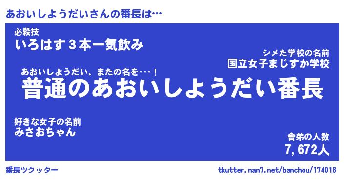 | ヘコむあだ名 | 『あおにー』『なまこ酢』『あおっ子』 |