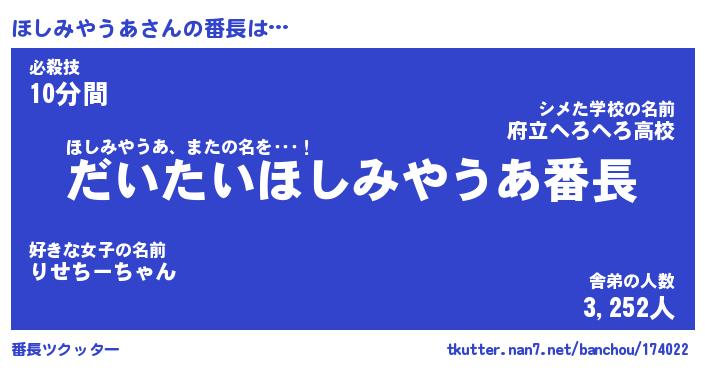 | 伝説のあだ名 | 『不死鳥のスナイパーほしみやうあ』 |