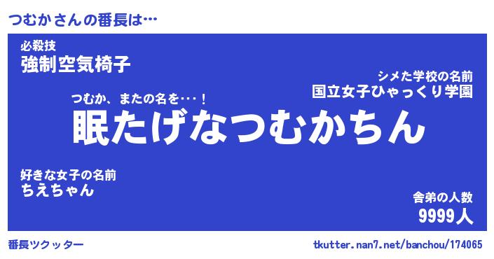 | ヘコむあだ名 | 『つむにゅー』『牛乳』『つむを』 |