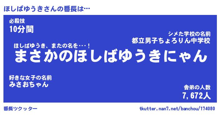 | ヒーロー風カッコイイあだ名 | 『スーパーホシバユウキ』『炎刃騎士ホシ』 |
