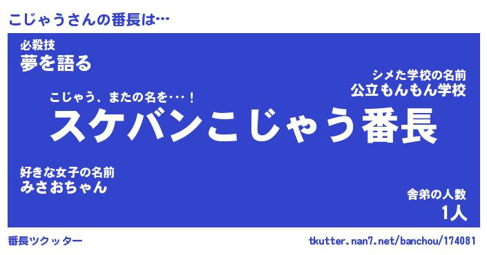 | 欧米人風あだ名 | 『マイケルこじゃう』『ウサインこじゃう』 |