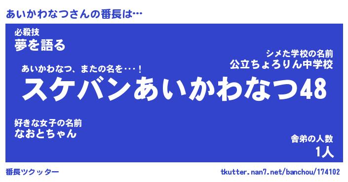 | 意味不明あだ名 | 『ペロリンあいかわなつ』 |