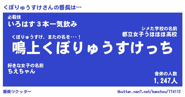 | ヒーロー風カッコイイあだ名 | 『スーパークボリュウスケ』 |
