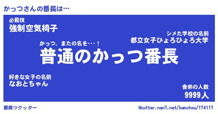 | 意味不明あだ名 | 『ペロリンかっつ』『かっつフォーエバー』 |