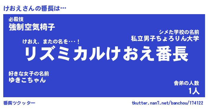 | 伝説のあだ名 | 『伝説の竜騎士けおえ』 |