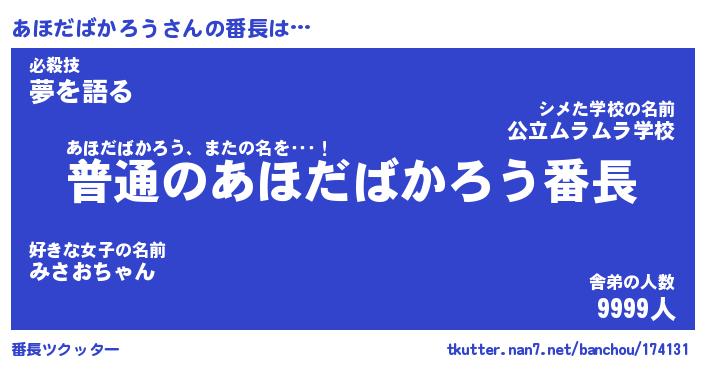 | ヒーロー風カッコイイあだ名 | 『スーパーアホダバカロウ』 |