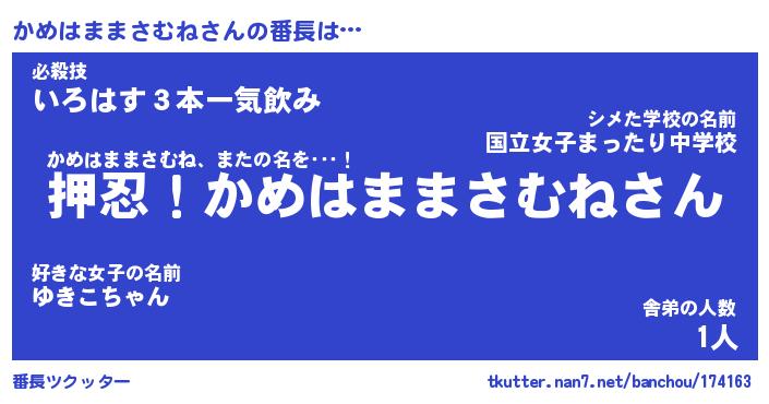 | 肩書あだ名 | 『かめはままさむね店長』 |