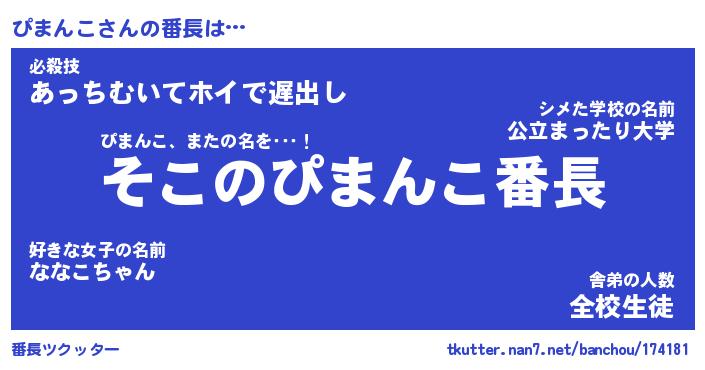 | 肩書あだ名 | 『ぴまんこ御曹司』『ぴまんこ国家主席』 |