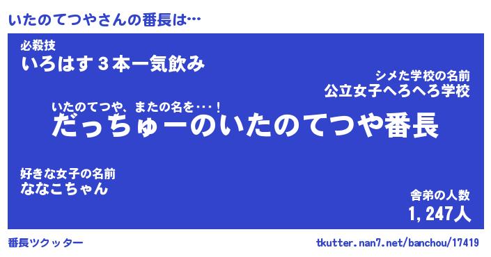 | 肩書あだ名 | 『いたのてつや御曹司』 |