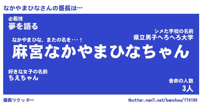 | 男性向けラノベタイトル風あだ名 | 『ナカヤマヒナアートオンライン』 |