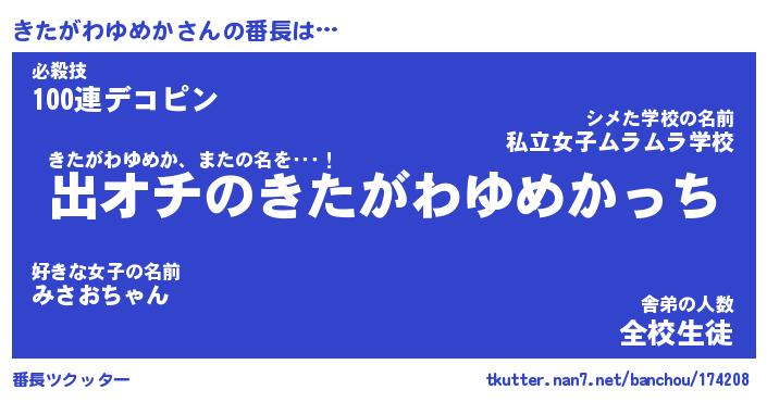 | 意味不明あだ名 | 『ペロリンきたがわゆめか』 |