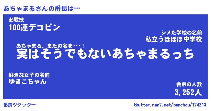 | 肩書あだ名 | 『あちゃまる社長』『あちゃまる国家主席』 |