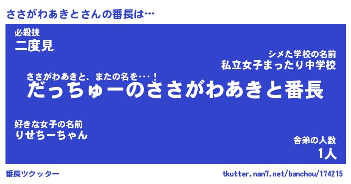 | 2回繰り返すあだ名 | 『ささささ』『ささささ』『あんあん』 |