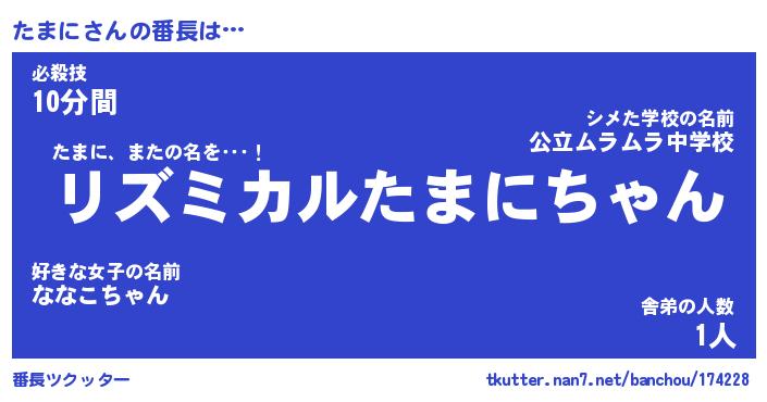| ファンタジー風あだ名 | 『タマフェル』『エターナルタマニー』 |
