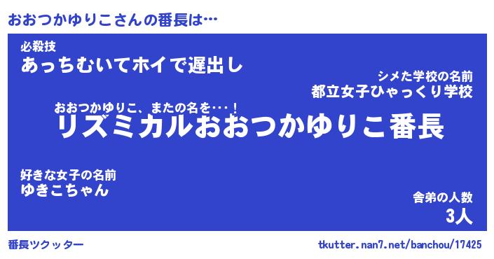 | 伝説のあだ名 | 『伝説のスナイパーおおつかゆりこ』 |