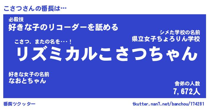| 肩書あだ名 | 『こさつ社長令嬢』『こさつ総理大臣』 |