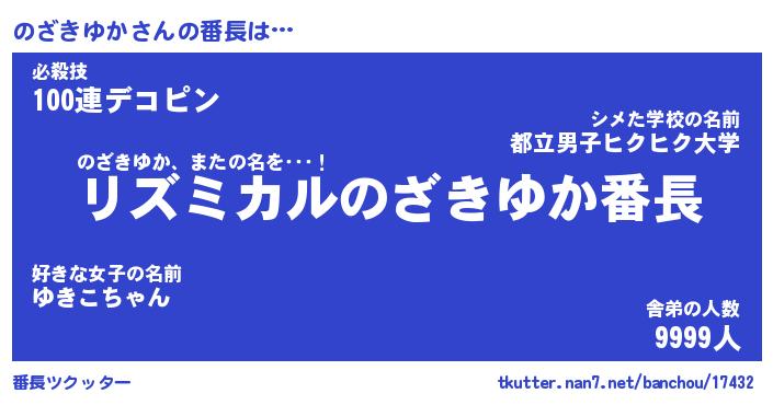 | ファンタジー風あだ名 | 『ノザフェル』『エターナルノザキユカー』 |