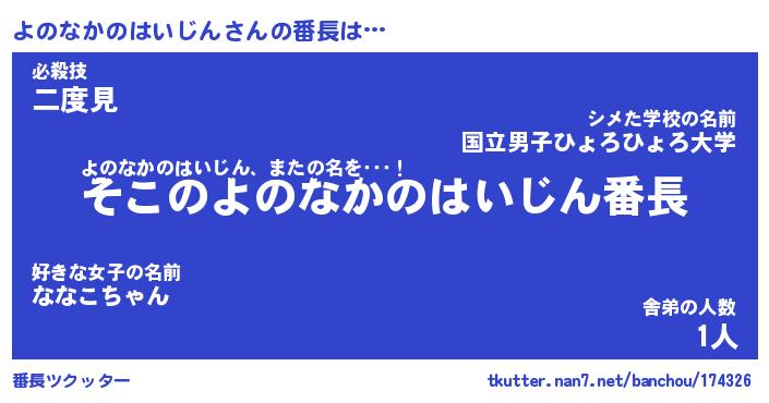 | 伝説のあだ名 | 『不死鳥のスナイパーよのなかのはいじん』 |