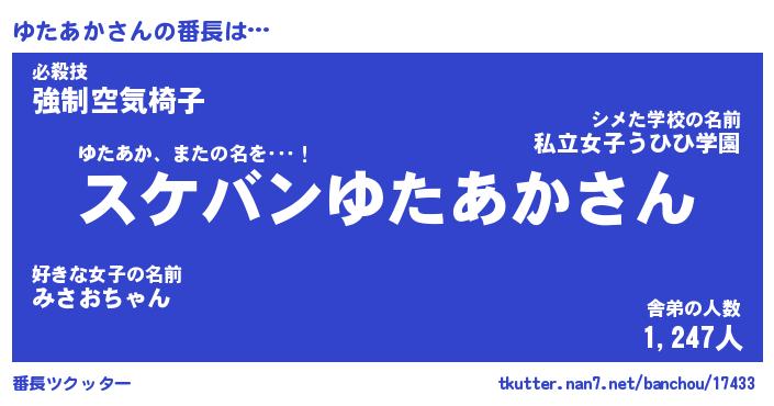 | 意味不明あだ名 | 『ペロリンゆたあか』『永久保存ゆたあか』 |