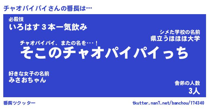 | 欧米人風あだ名 | 『マイケルチャオパイパイ』 |