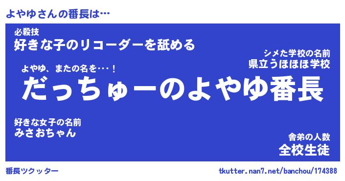 | 意味不明あだ名 | 『ペロリンよやゆ』『よやゆフォーエバー』 |