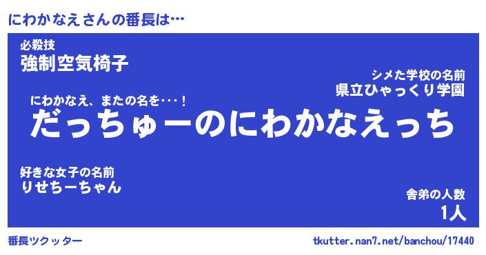| ファンタジー風あだ名 | 『ニワフェル』『エターナルニワカナエー』 |