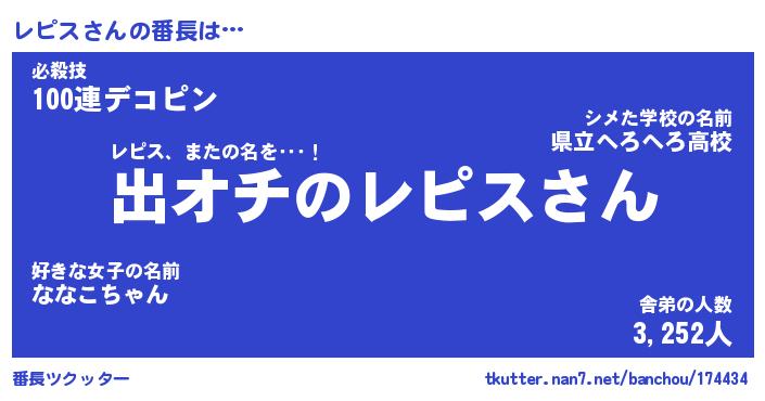 | ピコ太郎風あだ名 | 『レコ十郎』『ピレ二郎』『レピ六郎』 |