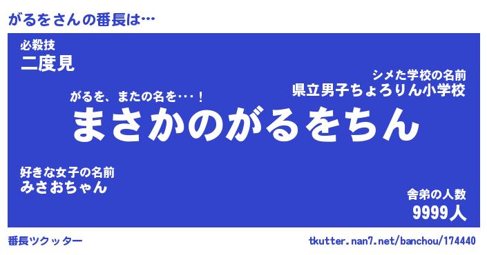 | 肩書あだ名 | 『がるを店長』『がるを国家主席』 |