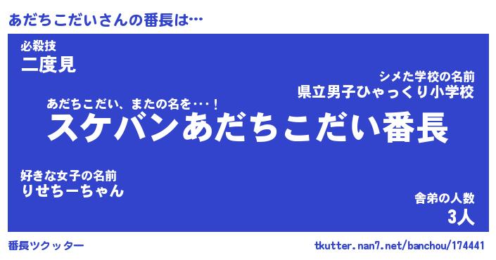 | ポケモン風あだ名 | 『アダチュウ』『アダチダネ』 |