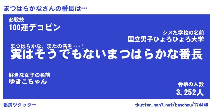 | ポケモン風あだ名 | 『マツチュウ』『マツハダネ』 |