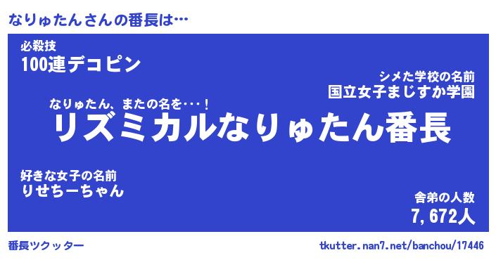 | 伝説のあだ名 | 『伝説のスナイパーなりゅたん』 |