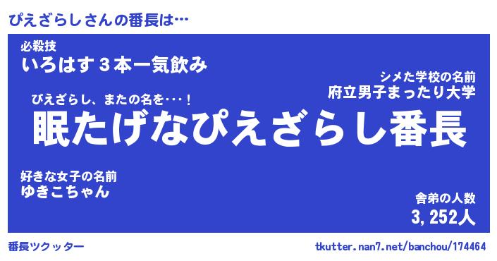 | 伝説のあだ名 | 『封印されしスナイパーぴえざらし』 |
