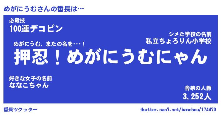 | 伝説のあだ名 | 『封印されしスナイパーめがにうむ』 |