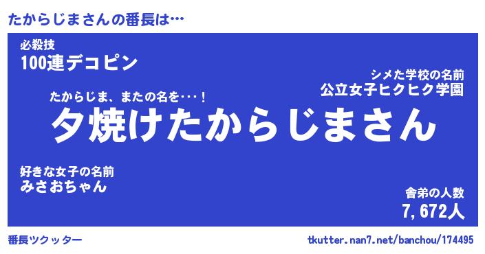 | 男性向けラノベタイトル風あだ名 | 『タカラジマアートオンライン』 |