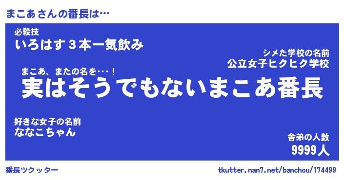 | ピコ太郎風あだ名 | 『マコ一郎』『ピマ五郎』『マコ三郎』 |