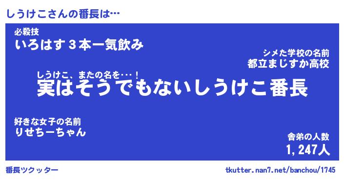 | 伝説のあだ名 | 『封印されしスナイパーしうけこ』 |