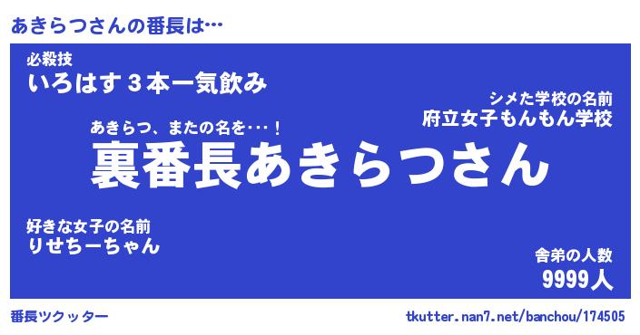 | 肩書あだ名 | 『あきらつCEO』『あきらつ国家主席』 |