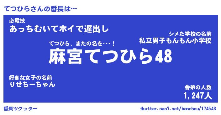 | 意味不明あだ名 | 『ペロリンてつひら』『永久保存てつひら』 |