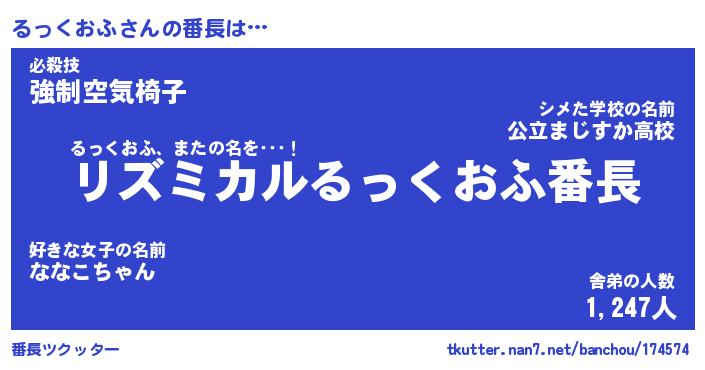 | ファンタジー風あだ名 | 『ルッフェル』『エターナルルックオフー』 |