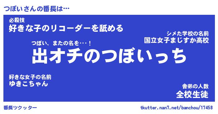 | ヘコむあだ名 | 『つぼっふぃ~』『豆乳』『つぼっ子』 |