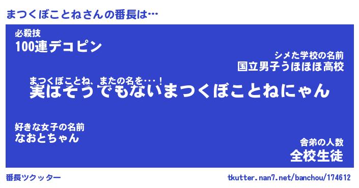 | ヘコむあだ名 | 『まつにゅー』『つくし』 |