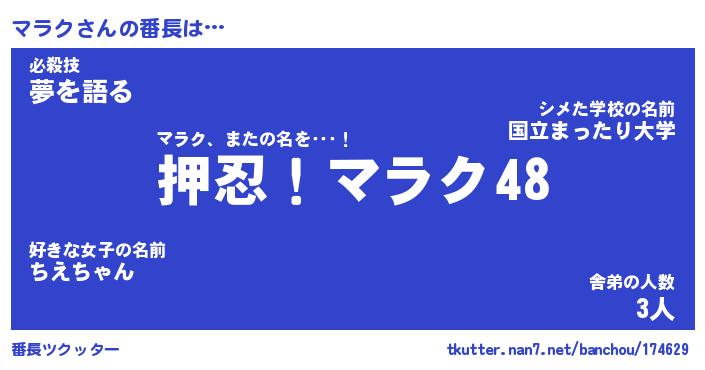 | 意味不明あだ名 | 『ペロリンマラク』『マラクフォーエバー』 |