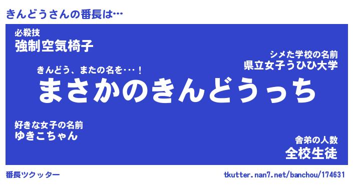 | 伝説のあだ名 | 『伝説のスナイパーきんどう』 |